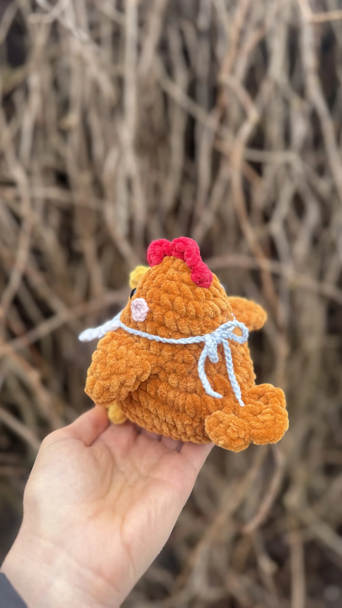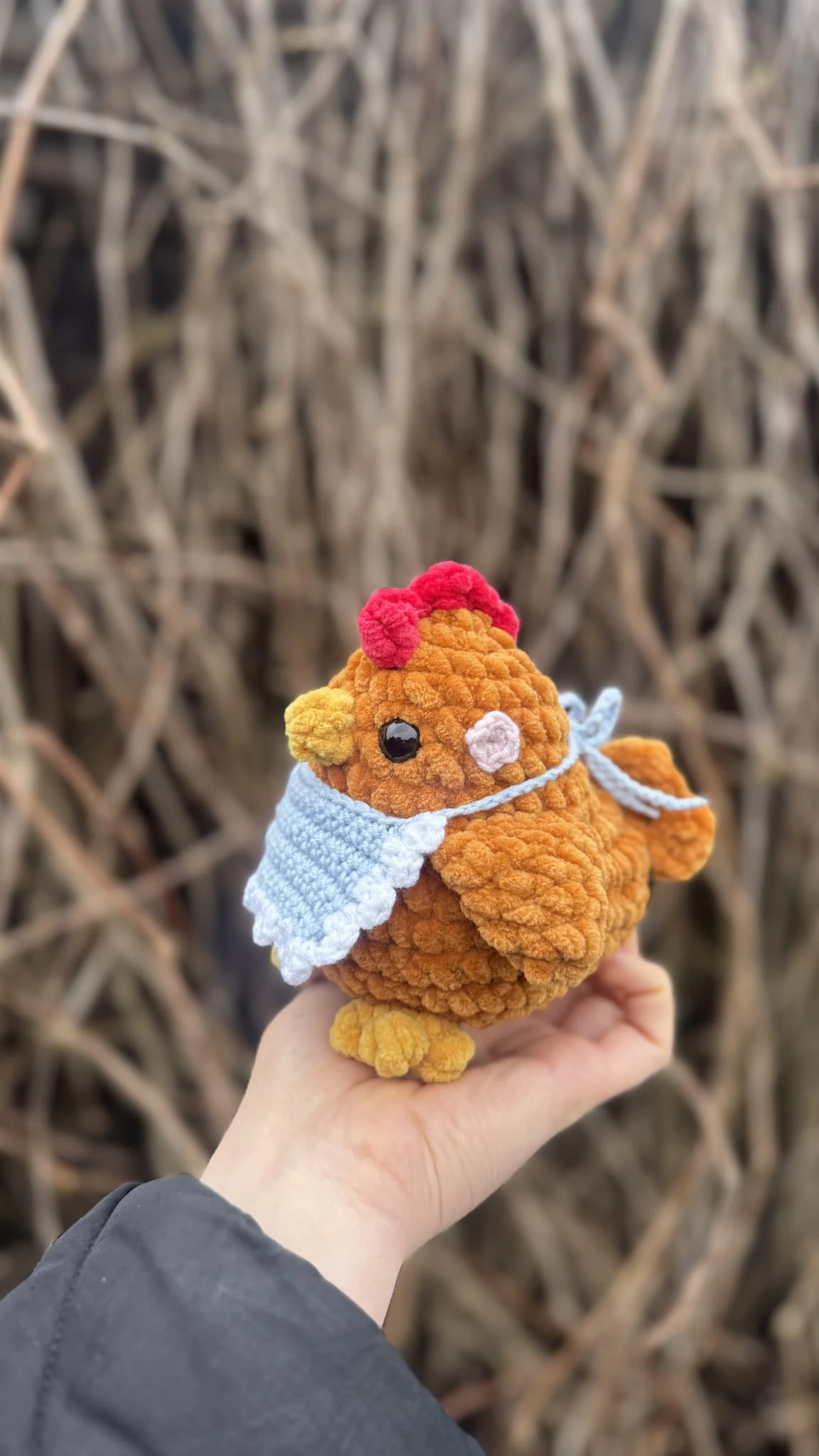 Ręcznie wykonany pluszak stworzony z miękkiej, pluszowej włóczki Luna Art Baby Fox o delikatnej, chenillowej strukturze. Materiał posiada certyfikat OEKO-TEX® Standard 100, co potwierdza jego wysoką jakość i bezpieczeństwo.