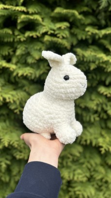Ręcznie wykonany pluszak stworzony z miękkiej, pluszowej włóczki Luna Art Baby Fox o delikatnej, chenillowej strukturze. Materiał posiada certyfikat OEKO-TEX® Standard 100, co potwierdza jego wysoką jakość i bezpieczeństwo.